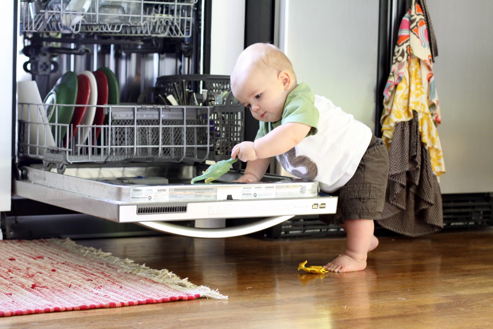 He helps me do the dishes. I think Levi is as amazed by our new dishwasher as I am. Yes, having a dishwasher is a new thing for us. I just have to be careful not to wash his toys along with the dishes!